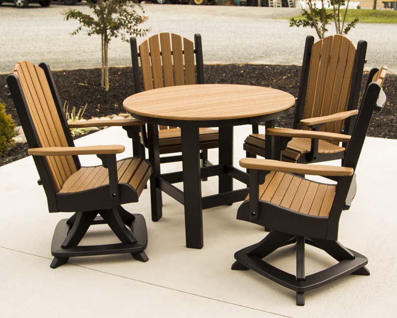 /Products/Furniture/Poly Furniture/Outdoor Dining Tables/48" Round Cafe Table Set with Fanback Swivel Chairs
