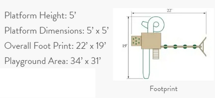 This playset has a 5'x5' tower with poly slats surrounding the 5' high platform, One of this set's cool features is the 7' tornado tube slide that is sure to get giggles from the kids. Underneath the 5' high tower is a sandbox just waiting for the kids to play in, It has a5' rockwall coming off the one side. Coming off the front is a 5' access ladder and a 10' Wonder Wave slide. On the 4 position 8' high swing beam hangs 2 soft grip belt swings, 1 soft grip trapeze and soft grip glider. Topping the whole set off is the wood roof covering the platform and a Captain's Wheel just waiting to take your kid on their next adventure.