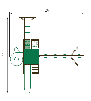 This Playset is an all-time favorite with the little ones and parents alike. Standing tall and proud as a 5' high Platform tower with a A-frame stance, it allows for lots of fun to be had. On Top of the Tower, you will find our Pyramid Roof with shingle design. This set has a 10' Climbing set, Rock wall, and a Cargo net for the adventurous ones. Who doesn't love a good slide? This set has 2, a 10' Wonder Wave and 5' Super Spiral Slide. On top of all of that, it has a 4 position 8' swing beam with 2 belt swings w/soft grips, 2-person plastic glider w/soft grips, and a soft grip buoy ball. The tower also has a 3 rope tire swing on a swivel underneath, plus a Ladder with a handrail for safe and easy access.