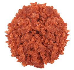 These Imitation Bacon Bits are made from textured soy flour, partially hydrogenated cottonseed and soybean oils, salt, flavoring and coloring and do not require any refrigeration. These bacon bits are perfect for topping tossed salads, soups, omelets, baked beans and cheese dishes.