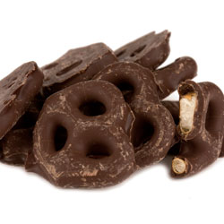 Dark Chocolate (sugar, chocolate liquor, cocoa butter, chocolate liquor processed with alkali, soy lecithin (emulsifier), salt, vanilla), Pretzels (enriched flour (wheat flour, niacin, reduced iron, thiamine mononitrate, riboflavin, folic acid), corn syrup, vegetable oil (corn, canola and/or soybean oil), salt, sodium bicarbonate, yeast).