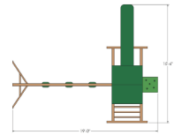 The Matterhorn Playset comes with a 5'x8' platform that sits 5' off the ground and has a 5'x5' heavy-duty tarp roof covering part of the deck. The 3-position swing beam has two belt swings & our 2-person plastic glider on it. That's not all; it also features a 10' Avalanche slide, ladder with handrail, and a pair of Binoculars with plenty of room left for additional add-ons.
