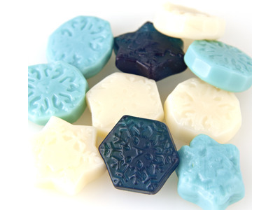 Add a bit of fruity, chewy fun to the winter months with this blend of gummi snowflake-shaped candy treats! The white flakes are pineapple flavored, the light blue are watermelon flavored and the dark blue have a delicious blue raspberry taste.
