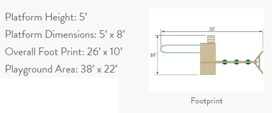 This set features our Trading Post with a 5' shelf and the platform's underside as an enclosed playhouse with a door and two functioning windows with screens. The Playset includes a 5'x8' tower that sits 5' high. The top deck has our poly slats surrounding the deck, plus a partial wood roof covering the area. The 5' access ladder leads the way up to the top deck, and a 10' Wonder Wave slide shows the way down. On the side, the 3 position 7' high swing beam has loads of swinging fun with a belt swing, infant swing, and 2 person glider.