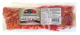 John F Martin's cracked pepper sliced bacon has a distinct bite but still delivers their smokey hardwood smoke flavor! They stand behind each and every package to ensure it is the best bacon you have ever tasted. John F. Martin bacon can be enjoyed at breakfast, lunch, and dinner.