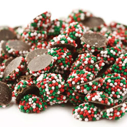 Ingredients: Sugar, chocolate liquor, cocoa butter, corn starch, corn syrup, soy lecithin (an emulsifier), vanillin (an artificial flavor), confectioner's glaze, carnauba wax, FD&C yellow 5, FD&C red 3, FD&C blue 1, FD&C red 40, FD&C yellow 6, and FD&C blue 2.