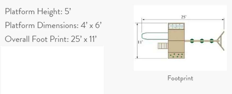 Unlike any other playset tower, the Olympus has its legs at an angle, creating a unique space for a tire swing underneath and climbing features on the legs.