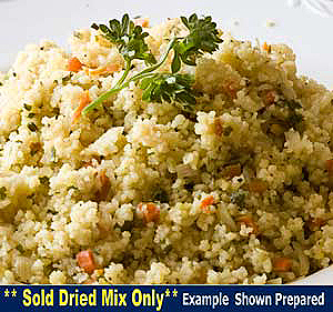 Couscous with Chives & SaffronCouscous with Chives and Saffron may look like rice, but is actually made from coarsely ground semolina pasta. This couscous is a quick cooking pasta seasoned with chives and saffron, making it a delicious side dish or a savory addition to your favorite casserole recipes.74300 24oz cont / 1 lb @ $6.79 per lb / $6.79 Details...