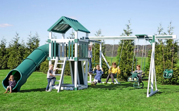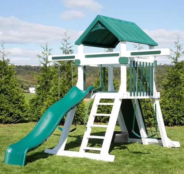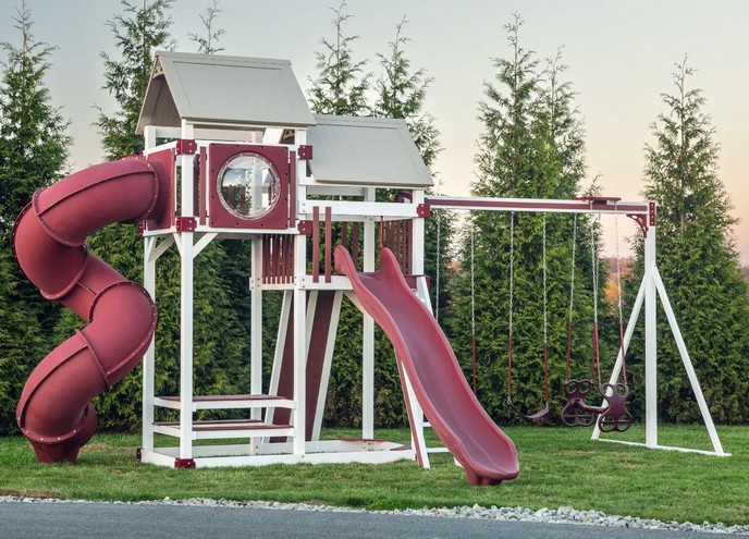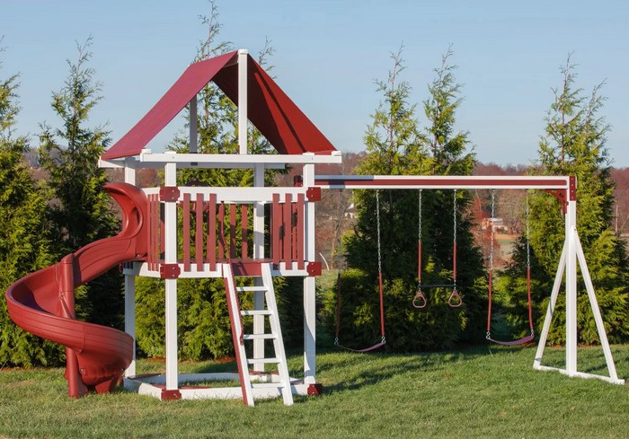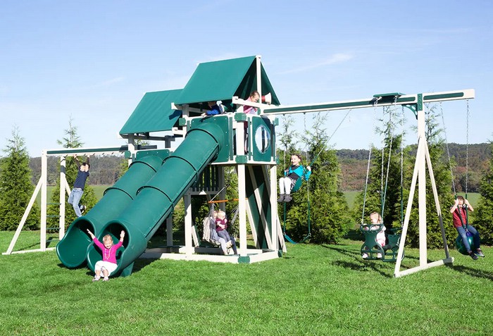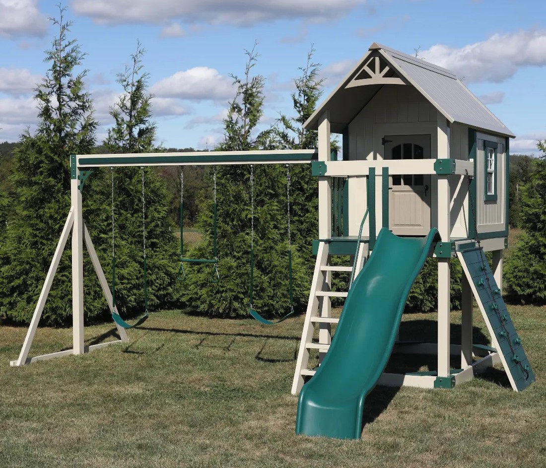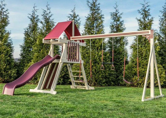 The Concord is our largest playset tower, with endless configuration options for attachments such as climbing ladders, swing beams, rock walls, slides, and more.