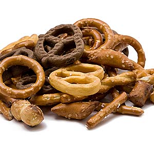 Nine Variety Pretzel Mix is a pretzel lover's dream! Nine pretzels come together to make a crunchy snack that has something for everyone. This mix has chocolate pretzel grahams, peanut butter filled pretzel pockets, little cheesers, pretzel balls, butter braided pretzels, micro mini pretzels, mini stick pretzels and pretzel rings to make a mix unlike any other. This mix is great for adults and also makes an easy to eat treat for the kids.