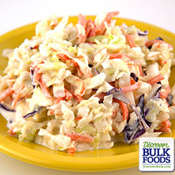 Natural Cole Slaw Dressing Mix is a creamy, old fashioned dressing mix that will turn any head of cabbage into a traditional picnic treat. Add our mix, which is a combination of carrots, celery salt and seed, red bell pepper, sugar and sea salt to mayonnaise, sour cream and apple cider vinegar. Toss the mixture with fresh shredded cabbage for a refreshing cole slaw for use as a side dish or for topping pulled pork sandwiches.