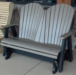 /Products/Furniture/Poly Furniture/Gliders & Rockers/Weatherwood & Black, Double Adirondack Glider, Poly