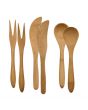 Made from burnished bamboo; includes 2 each forks (5.25 x 0.50 x 0.25-inch), spoons (5.25 x 1.25 x 0.25-inch), and spreaders (6 x 0.75 x 0.25-inch)