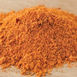 Ingredients: Sea Salt, Red Pepper, Dried Onion, Black Pepper, Non-GMO Dextrose, Dried Garlic, Paprika, White Pepper, Non-GMO Expeller Pressed Canola Oil, Crushed Red Pepper, Oregano, Natural Lemon Juice Flavor, Silicon Dioxide (flow agent), Thyme, Paprika Extract (color), Cumin, Sage.