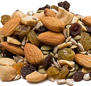 Components: Raw Natural Almonds, Roasted Cashews, Flame Raisin, Golden Raisins, Raw Sunflower Meats, Raw Pumpkin Seeds.