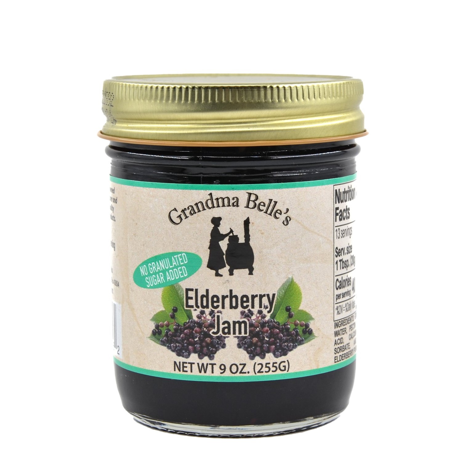 Experience the captivating taste of Grandma Belle's Jam, carefully crafted with elderberries and naturally sweetened using white grape juice concentrate, resulting in a lusciously sweet treat without the addition of granulated sugar.