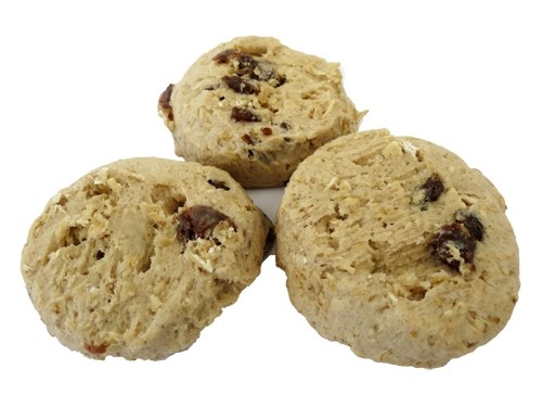 Ing: Bleached enriched flour (wheat flour, niacin, reduced iron, thiamine mononitrate, riboflavin, folic acid), sugar, raisins, margarine (palm oil, water, salt, vegetable monoglycerides, natural butter flavor, citric acid, vitamin A palmitate, beta carotene (color), milk), oats, eggs, invert sugar. Contains 2% or less of the following: butter (milk), leavening (sodium bicarbonate), molasses, salt, spice.