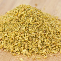 Ingredients: Dried Garlic, Dried Onion, Raw Cane Sugar, Sea Salt, Wheat Flour, Dried Roasted Garlic, Non-GMO Expeller Pressed Canola Oil, Parsley, Non-GMO Soy Sauce Powder (fermented soy sauce [contains soybean and wheat], maltodextrin, salt), Dried Red Bell Peppers, Citric Acid (acidifier), Ascorbic Acid (preservative), Beta-Carotene (color).