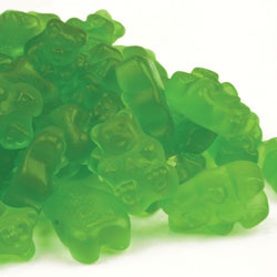 Ingredients: Corn syrup (From Corn), Sugar (From Beets), Water, Gelatin, Citric Acid, Natural and Artificial Flavors, Pectin (Derived form Fruit), Vegetable Oil (Coconut, Canola) and Carnauba Leaf Wax (To Prevent Sticking), FD&C yellow 5, FD&C Blue 1.