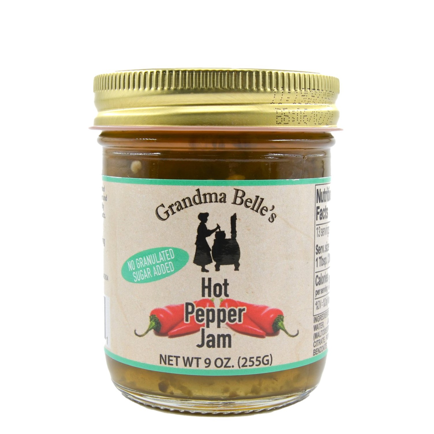 Experience the unique fusion of sweet and spicy in Grandma Belle's Jam, skillfully crafted with hot peppers, resulting in flavors that combine sweetness with a hint of heat.