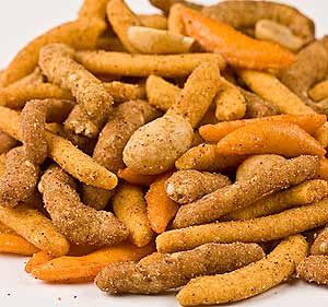 Components: Cajun Sesame Sticks, Chili Lemon Corn Sticks, Hot Nacho Peanuts, Chili Crescent Bits, Red Pepper.