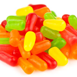 Experience the delightful sweetness of fruity chewy candy with MIKE AND IKE ® It's fruity, it's chewy, it's FRUCHEWY ®! This ten-flavor MIKE AND IKE ® MEGA MIX isexploding with a variety of fruit flavors, including Cherry (red), Strawberry (pink), Banana (yellow), Orange (orange), Peach (peach), Green Apple (light green), watermelon (dark green), Blue Raspberry (light blue).