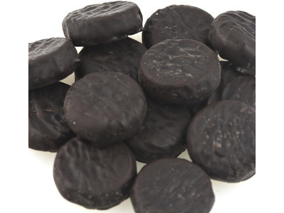 These nickel sized cool and creamy mint flavored patties are covered in rich dark chocolate. They make a sweet and refreshing treat that is great for snacking at any time of the day.