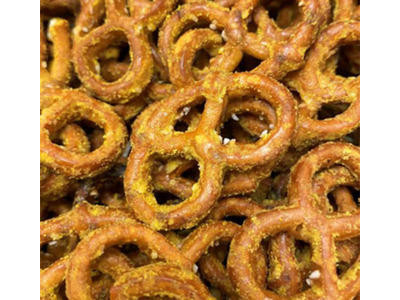 Ingredients: Pretzels (enriched wheat flour (contains iron as ferrous sulfate, niacin, thiamin mononitrate, riboflavin, folic acid), salt, sunflower or canola or rice oil, corn syrup, malt syrup and yeast.), palm oil, seasoning (mustard powder ((distilled vinegar, mustard seed, salt, turmeric, paprika, spice, natural flavor, garlic powder), maltodextrin, modified food starch, natural flavor), maltodextrin, salt, corn syrup solids, monosodium glutamate, autolyzed yeast extract, Worcestershire sauce powder ((molasses, vinegar, corn syrup, salt, caramel color, garlic, sucrose, spices, tamarind, natural flavor and sulfating agent), maltodextrin, onion powder, garlic powder, turmeric, oleoresin turmeric, disodium inosinate, disodium guanylate).