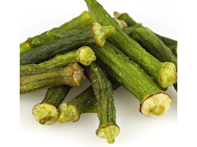 These Okra Chips are heavily used in Southern cuisine and traditional gumbo recipes. These chips have a deep green color and light and airy yet crispy texture. Okra chips have a light dusting of salt and mild flavor, perfect for snacking or for dipping in your favorite chip or vegetable dip.