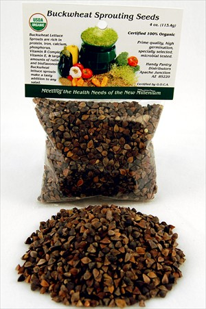 Typical foods set aside for storage are traditionally low or nonexistent in vitamin C and many of the B vitamins. With Organic Buck Wheat seeds however this is not that case, from those same storage foods can be sprouted to give a rich source of these important nutrients. Organic Buck Wheat Seed Sprouts are an excellent source of vitamin C and also contain many good B vitamins. And you probably won't find a less expensive way to get these vitamins than from low calorie organic buck wheat seed sprouts.