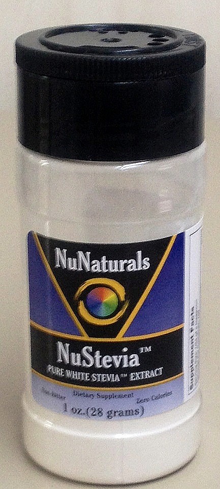 Our NuStevia White Stevia Extract is our most concentrated form, and only a tiny amount is needed. This is a powder extact. This form is excellent for mixing up large batches of beverages or for recipes. One thirty-second to one-sixteenth of a teaspoon is all you need. NuNaturals Pure NuStevia Extract contains absolutely no calories. As a dietary supplement alternative to sugar, 3/4 of a teaspoon tastes as sweet as 1 cup of sugar.
