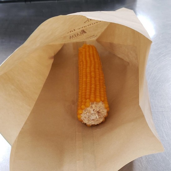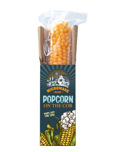 This corn pops right off the cob. Simply remove the plastic wrap, put the cob into the paper bag provided, and in about 2 minutes in the microwave, you’ll be rewarded with a single serving (6 to 8 cups) of deliciously light and fluffy popcorn. Yummy right from the bag or add your own butter and salt if you prefer.