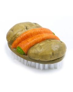 This bristled brush looks like a potato with carrots and is perfectly designed to clean the dirt off without damaging the potatoes or carrots.