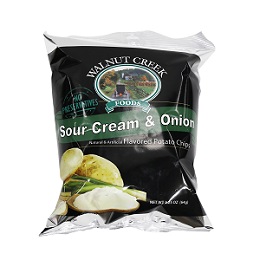 Ingredients: Potatoes, vegetable oil (contains one more of the following: corn, cottonseed, sunflower), salt, sour cream & onion seasoning (maltodextrin, whey, onion powder, salt, sour cream powder [sour cream (cream, cultures, lactic acid), cultured nonfat milk solids, citric acid), natural flavors, spice, citric acid (may contain sunflower oil and silicon dioxide as processing aids).