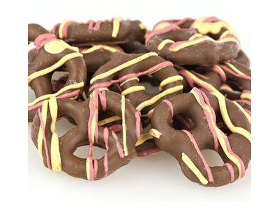 Confectionery Coating (sugar, partially hydrogenated palm kernel oil, cocoa, dry whey (milk), nonfat dry milk, soy lecithin, artificial flavors), Pretzels (enriched wheat flour (wheat starch, niacin, reduced iron, thiamine mononitrate, riboflavin, folic acid, silicon dioxide (anti-caking agent)), corn syrup, salt, sodium bicarbonate, yeast), Yogurt Coating (sugar, palm kernel oil, nonfat milk powder, sweet whey (milk), nonfat yogurt powder (cultured whey, nonfat milk), titanium dioxide (color), soy lecithin, lactic acid, natural flavors), Artificial Coloring (includes red 40 lake, blue 2 lake, yellow 5 lake).