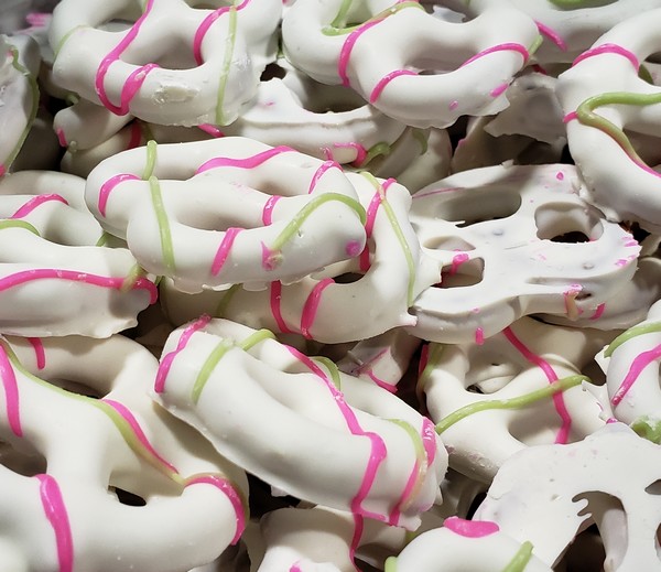 /Products/Grocery/Candy/Candy, Seasonal/Easter Candy/Pretzels Frosted Easter (Drizzle pink/green)
