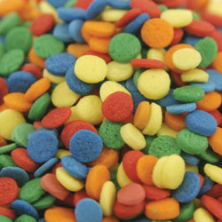 Sequin Shapes Sprinkles will turn any cake or cookie into a festive party treat! This mix features red, orange, yellow, green and blue sequin shapes that will give your baked goods a bold and colorful look.