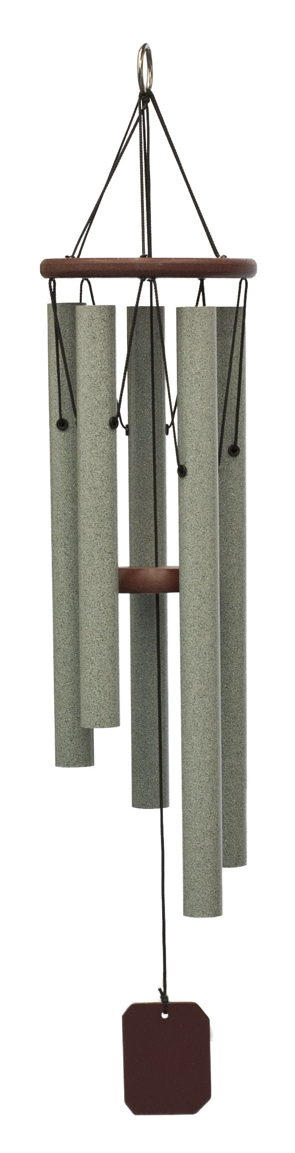 These Sparkling Brook Wind Chimes are made from a very high quality powder coated colored extruded aluminum tubing,Echo friendly poly-wood top and clapper,Handcrafted and tuned by an Amish Craftsman.These chimes give of the soothing sounds of an Sparkling Brook.