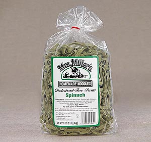 This colorful pasta is a great way to get your children to eat their vegetables. Mrs. Miller's Spinach Noodles are packed with flavor and are cholesterol free. Use these noodles in main pasta meals and casseroles for a colorful twist on your usual recipe.