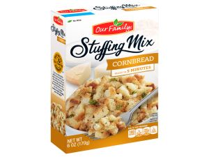 Ing: Enriched Wheat Flour (wheat flour, niacin, reduced iron, thiamin mononitrate, riboflavin, folic acid), Corn Meal, High Fructose Corn Syrup, Onions*, Vegetable Shortening (interesterified [high oleic soybean oil, soybean oil]), Salt, Hydrolyzed Corn Gluten, Celery*, Sugar, Parsley*, Chicken Fat, Yeast, Onion Powder, Grain Vinegar, Maltodextrin (from corn), Cornstarch, Potassium Chloride, Disodium Inosinate, Disodium Guanylate, Spices, Spice Extractives, Soy Lecithin, Annatto (color), Extractives of Turmeric (color), Caramel Color, Citric Acid, Chicken Broth, Chicken*. *DriedContains soy, wheat.