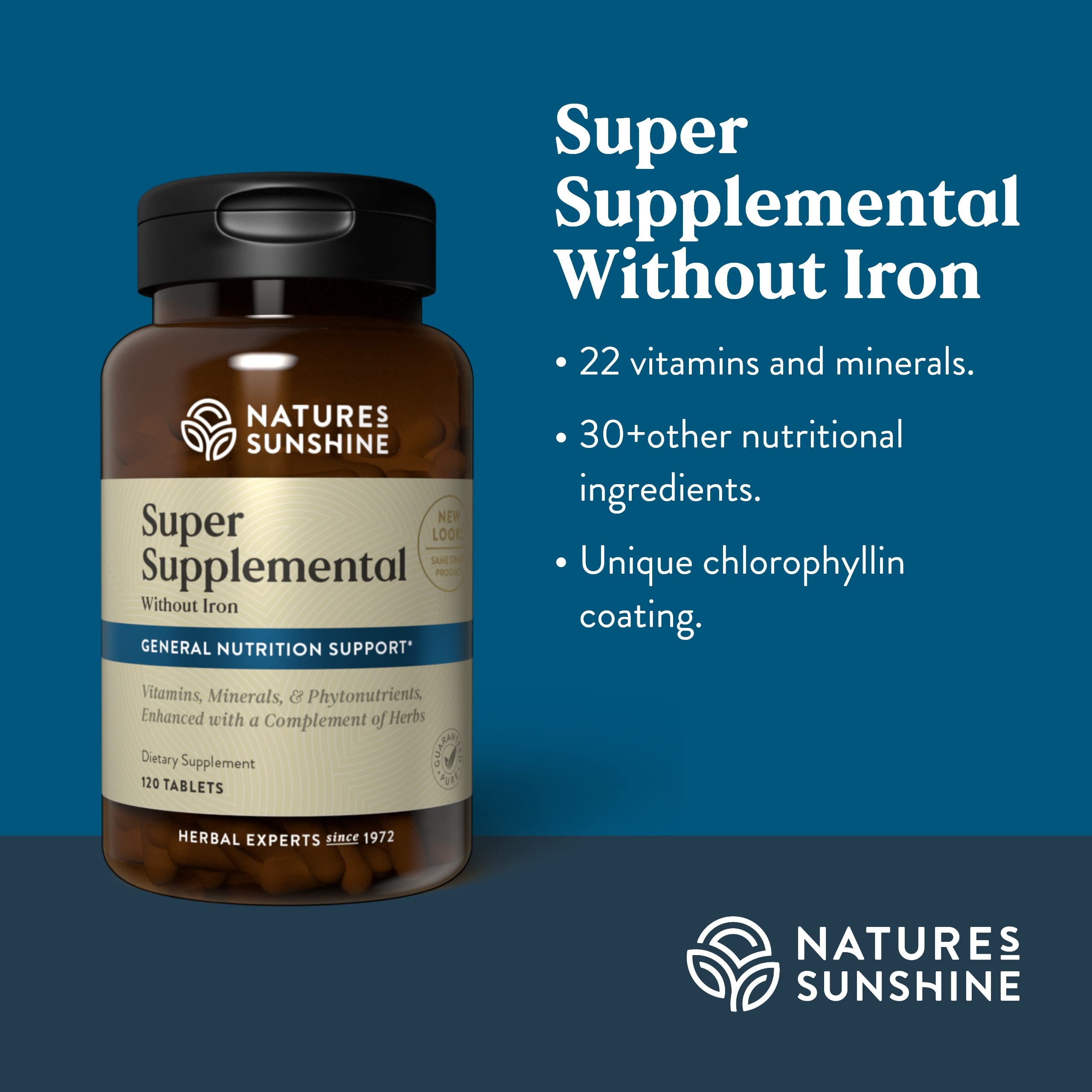 Super Supplemental Vitamins & Minerals [Vital Nutrition] augments any diet. Balanced nutrients are often in short supply during periods of physical stress or convalescence, or in a diet consisting of mostly processed foods. Supplementing your diet with Super Supplemental can help fill the void.