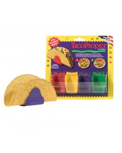 TacoProper's the original single taco holder for handling, filling, and serving crunchy tacos without broken shells or spilled toppings. Stop wasting taco shells! Eat every shell in the box for less waste. Proudly made in America, TacoProper's FiestaPak gently cradles crispy taco shells and protects them from any handling pressure to prevent cracking and breakage. Confidently pack each shell high and deep with fillings. Each taco stands upright on plates and platters to keeps hands free for more important tasks, like filling, serving and eating every delicious creation. Transport and serve tacos without them toppling and scattering fillings for an effortless indoor and outdoor lifestyle. This set of 4 is perfect for avid taco enthusiasts, parties, and taco bar buffets. Whether it's taco Tuesday with family or Cinco de Mayo with friends, these festive colors can be used creatively to help identify tacos, from spicy to mild, meat, chicken or fish, vegetarian, or personalized creations per specific family members or guests. Simply place a crispy taco shell in a TacoProper, pack in favorite ingredients and toppings. Each TacoProper holds 1 crunchy taco shell. Proudly made in the USA from BPA-free and FDA-approved plastic. Sturdy, durable and reusable. Microwave safe for easy reheats. Dishwasher safe for easy cleanup.