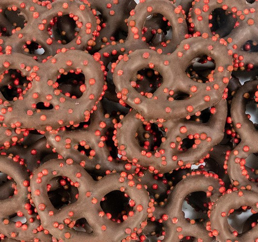 Ingredients: Yogurt Coating (sugar [sugar, cornstarch], hydrogenated palm kernel oil, sugar, milk blend [milk, nonfat milk, lactose], togurt blend [nonfat milk, whey, lactic acid], nonfat milk, yogurt powder [cultured whey, nonfat milk], soy lecithin [an emulsifier], artificial sour cream flavor, artificial color, lactic acid, artificial vanilla flavor), Pretzels (enriched flour [wheat flour, niacin, reduced iron, thiamine mononitrate, riboflavin, folic acid], contains 2% or less of corn syrup, salt, corn oil, canola oil, soybean oil, malt, sodium bicarbonate, yeast), Sugar, Palm Kernel Oil, Contains 2% or Less of Whey, Milk, Coconut Oil, Propylene Glycol, Red 3, Red 40 Lake, Soy Lecithin, Sunflower Lecithin (an emulsifier), Natural Vanilla Flavor.