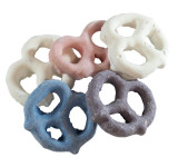 Ing: Coatings [Blueberry and Raspberry Yogurt (sugar, palm kernel oil, hydrogenated palm kernel oil, whey powder, contains 2% or less of the following: whole milk solids, yogurt powder (cultured whey protein concentrate, cultured skim milk), soy lecithin (emulsifier), artificial color (titanium dioxide), salt, lactic acid, natural flavor, nonfat dry milk solids, red lake 40, blue lake 2, coconut oil, sunflower lecithin), Strawberry Yogurt (Sugar, Vegetable Oil (Palm Kernel and/or Palm), Whey Powder(Milk), Dry Nonfat Yogurt (Cultured Skim Milk), Soy Lecithin (an Emulsifer), Salt, Natural Vanilla Extract], Strawberry Color[Sunfower Oil, Maltodextrin, Vegetable Juice, Citric Acid, Annato Extract, Ascorbic Acid], Natural Flavors, Natural Strawberry Flavors), Yogurt Coating (sugar, palm kernel oil and/or palm oil, nonfat dry milk, whey powder, nonfat yogurt powder (cultured whey, nonfat milk), titanium dioxide, soy lecithin (emulsifier), lactic acid, vanilla)], Pretzels (unbleached enriched wheat flour [flour, niacin, reduced iron, thiamine mononitrate [vitamin B1], riboflavin [vitamin B2], folic acid], malt, salt, soybean oil, corn syrup, sodium bicarbonate (leavening),canola oil, yeast)