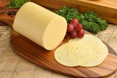 Lacey Baby Swiss is a semi soft cheese made with part-skim milk that has a minimal amount of cream reduced. This is a pale ivory colored cheese with numerous small holes called "eyes," creating an attractive lacy appearance. With a flavor that is mild, nutty, and buttery, it is great for slicing and melting.